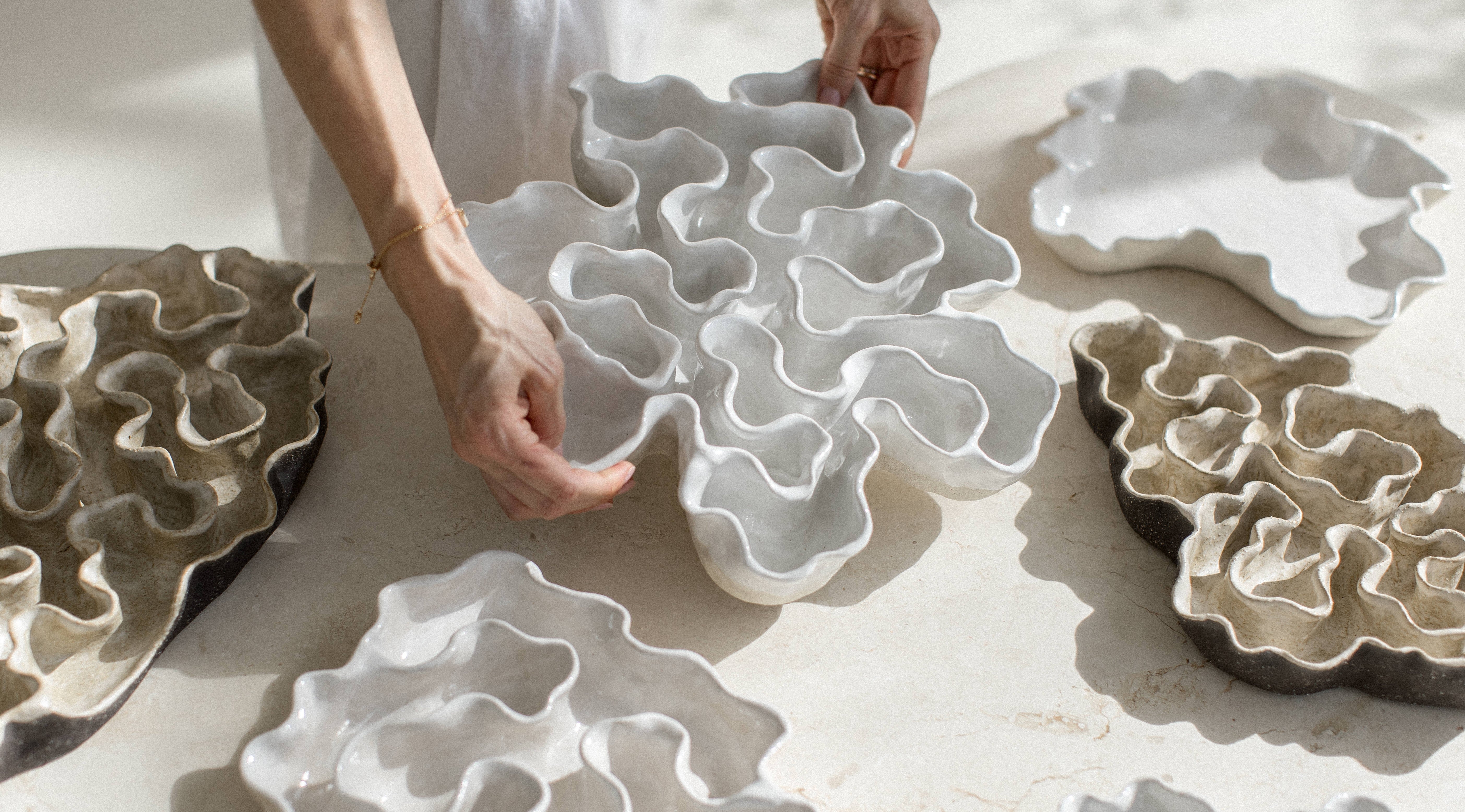Her journey into the world of ceramics began during her practice in interior design, where she discovered her interest in handmade, one-of-a-kind pieces.