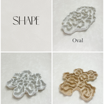 Oval shapes will measure approximately 45cm x 25cm