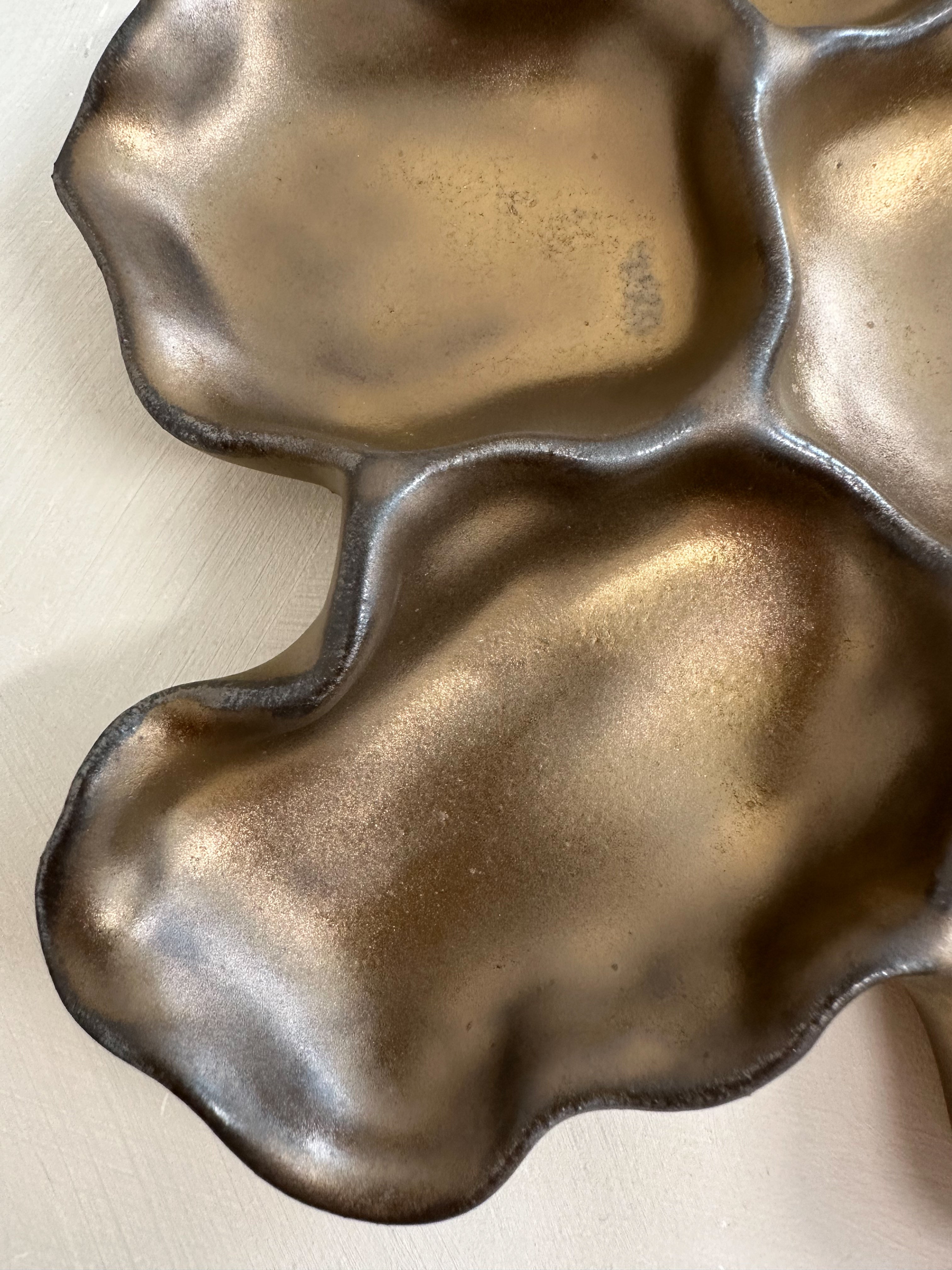 This Harbour Oyster Platter has been hand crafted with a smooth speckled white/grey clay body and glazed with a bronze/gold ombre shimmering glaze.