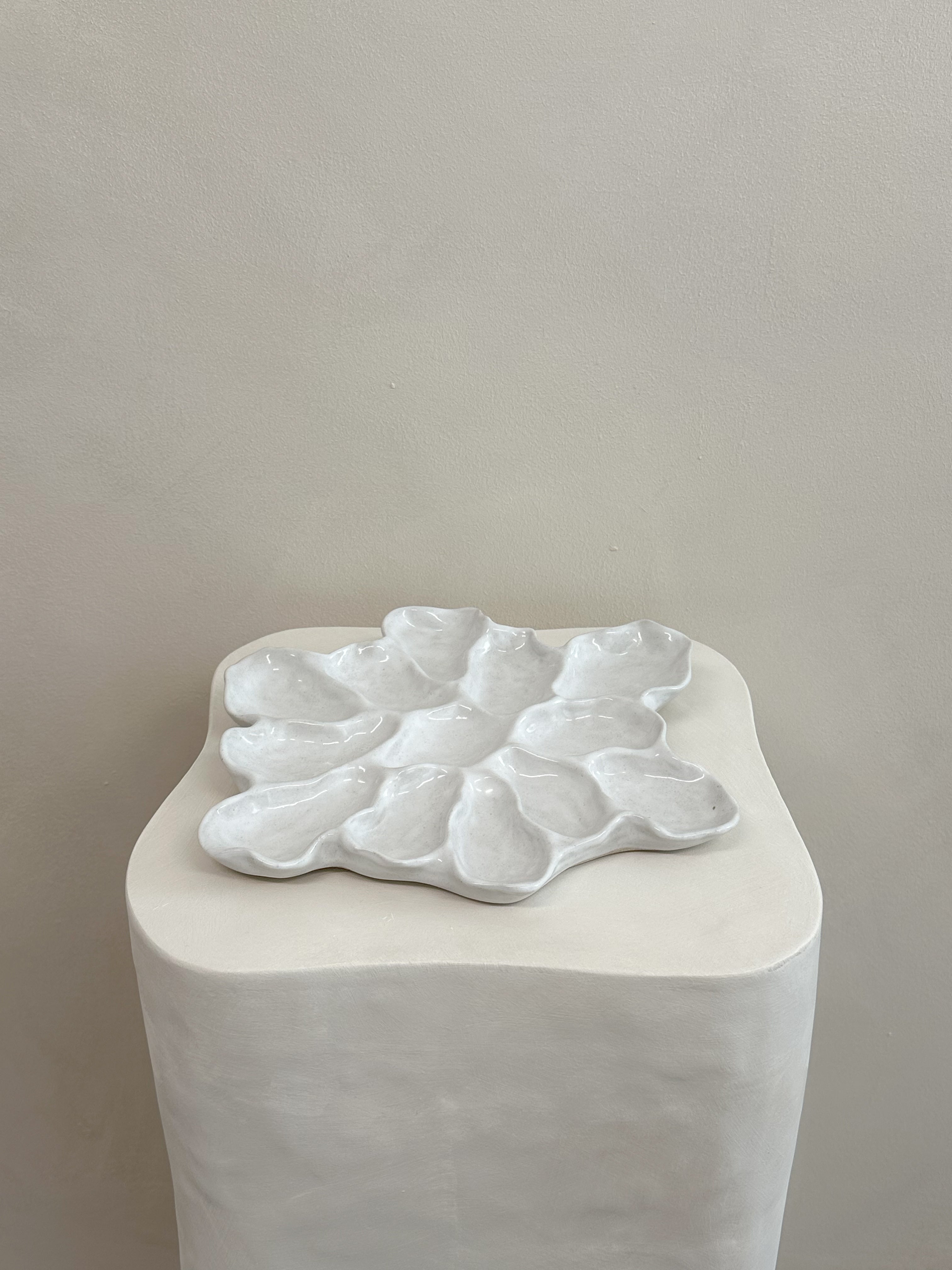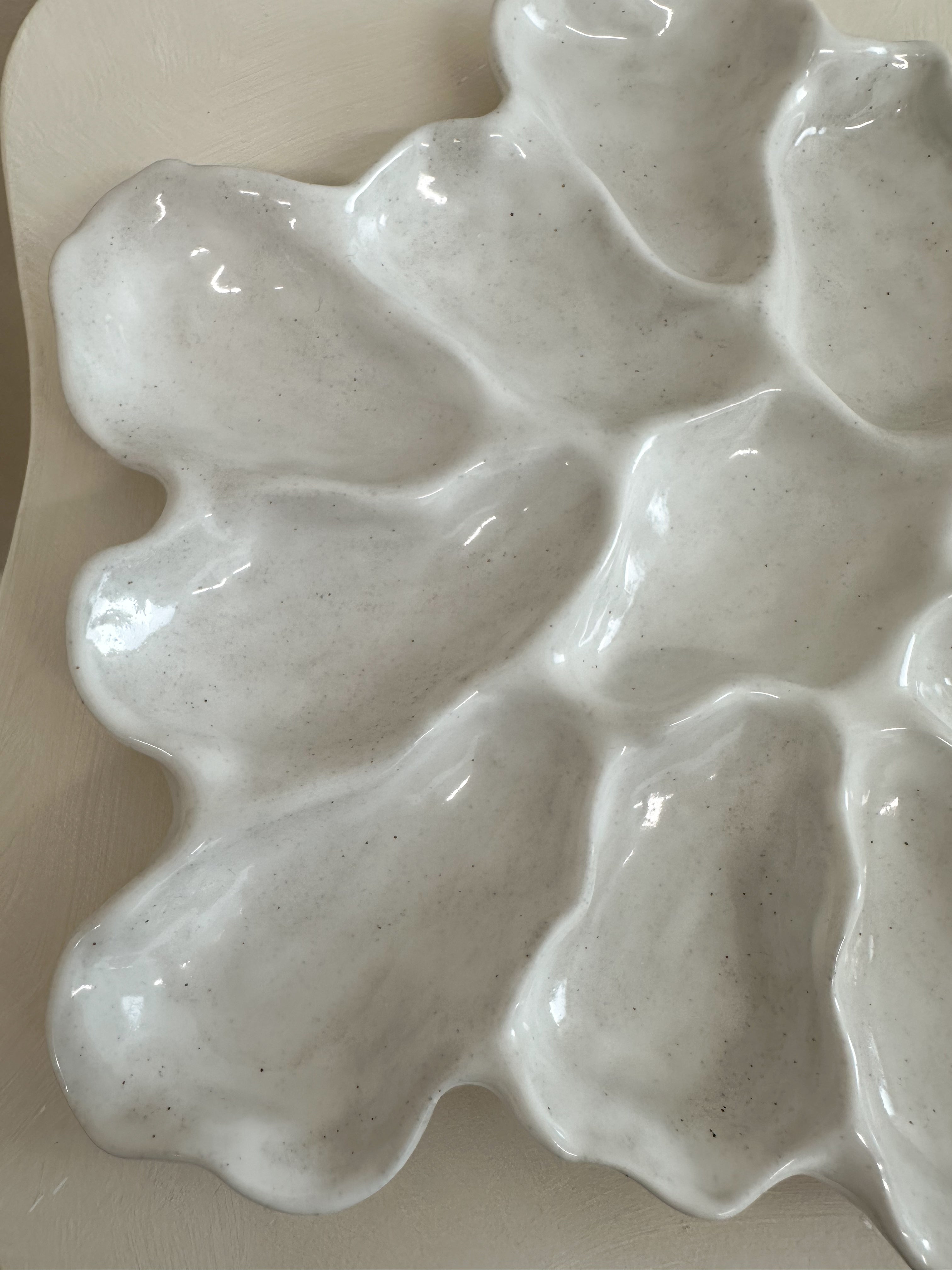 This Harbour Oyster Platter has been hand crafted with a smooth speckled white/grey clay body and glazed with a glossy white glaze.
