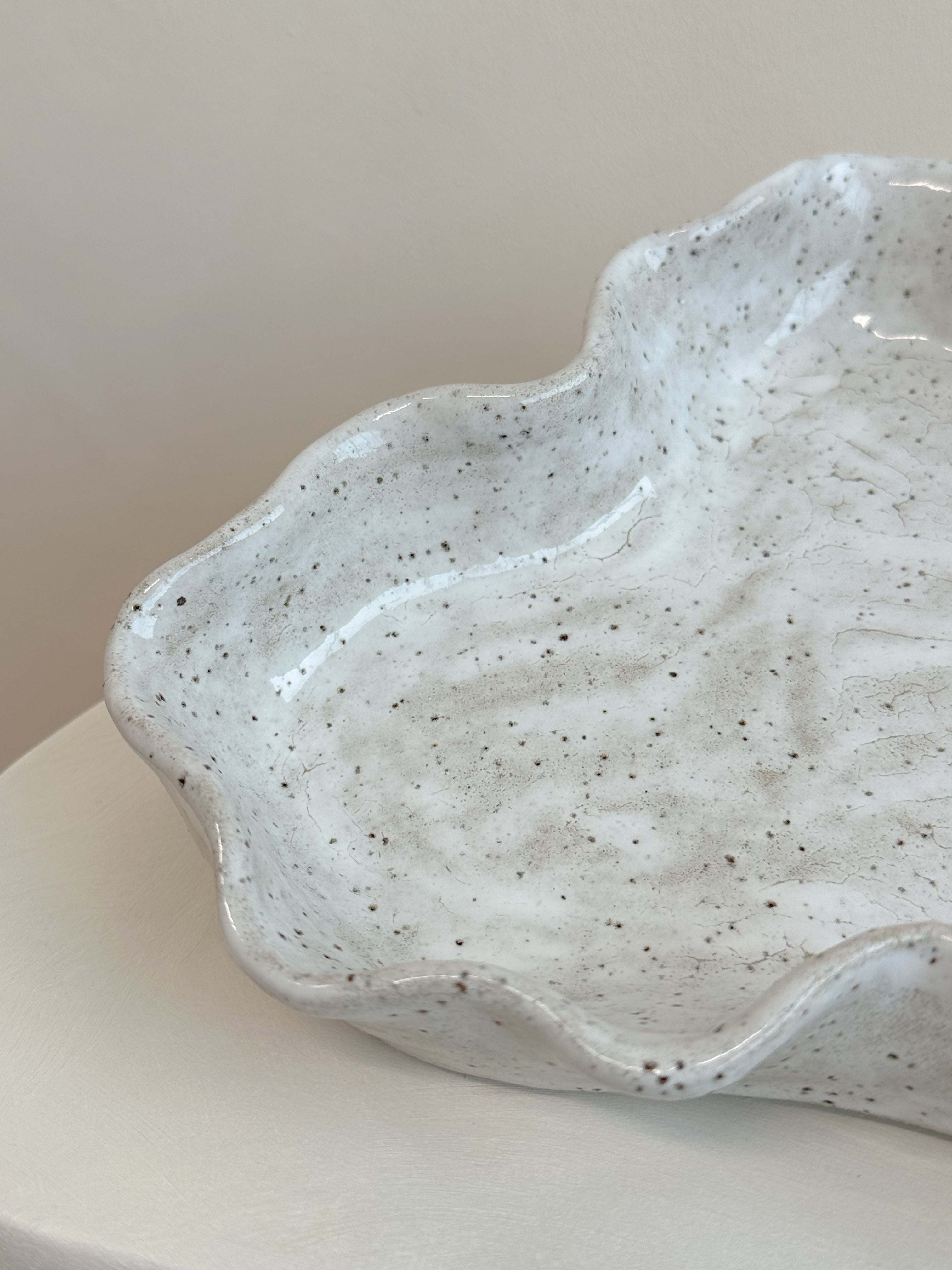 Sculpture #80 White Crackle/Natural Speckle On The Rocks Oyster Platter