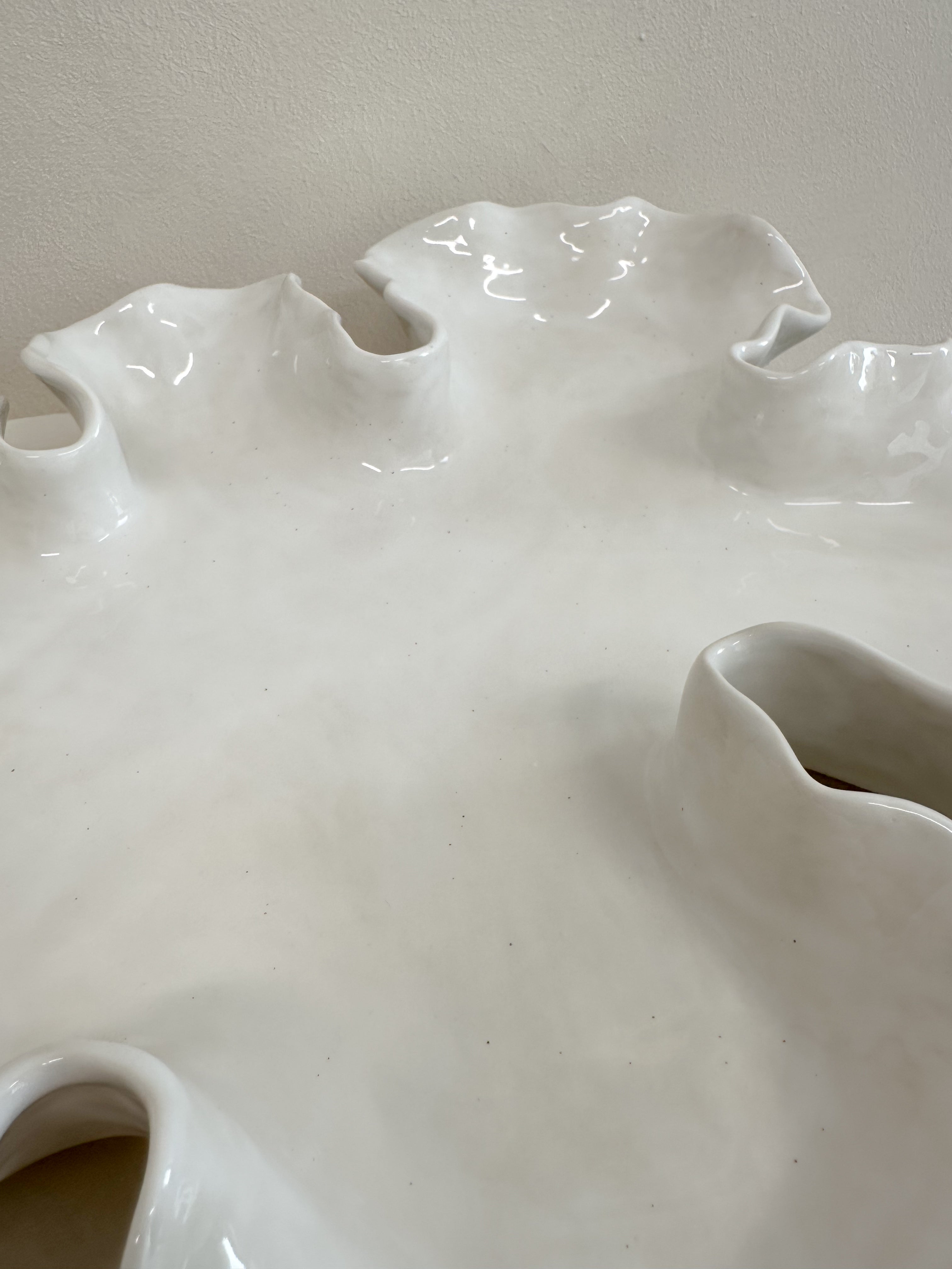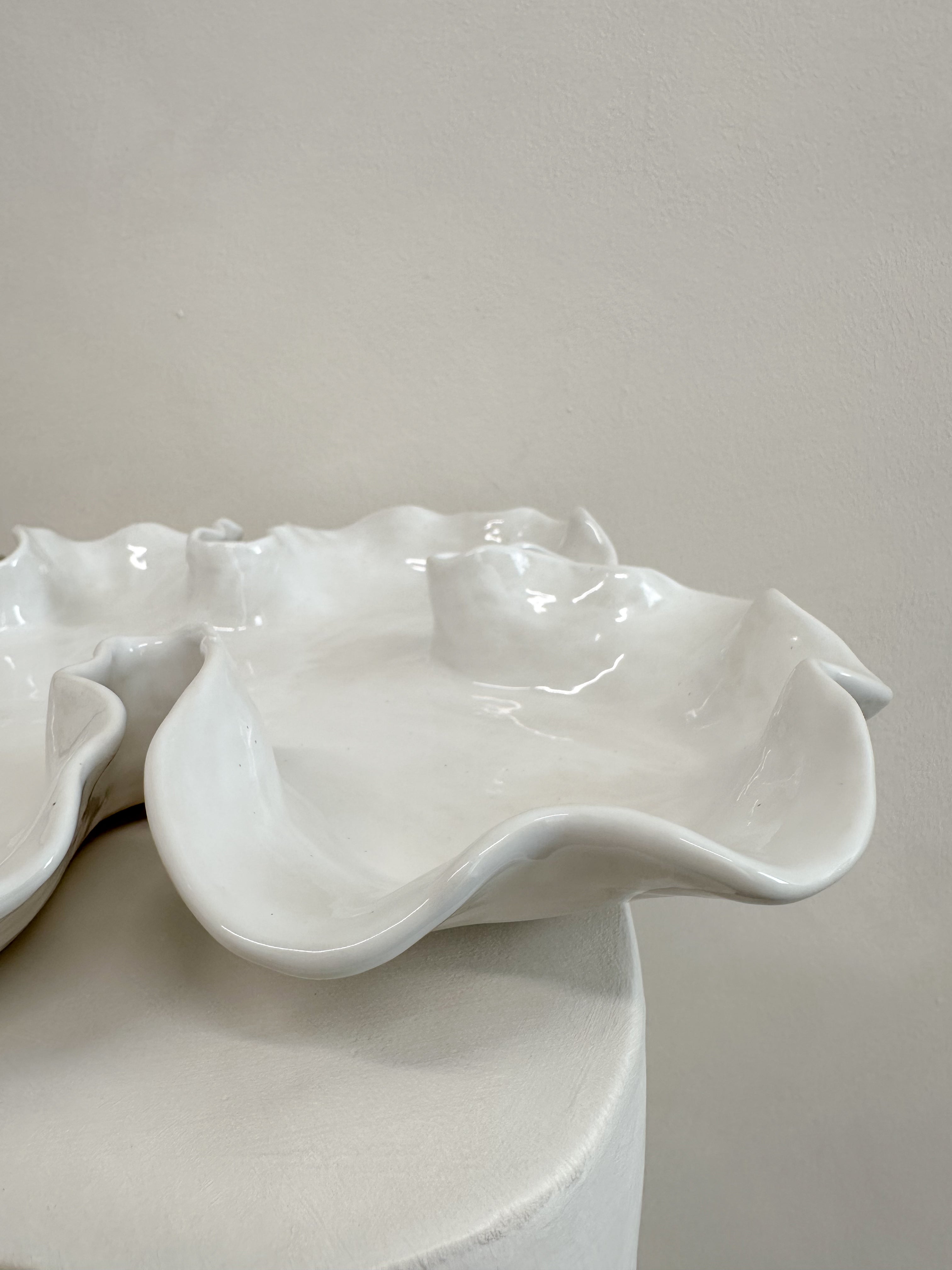 This On the Rocks Oyster Platter has been hand crafted with a smooth off-white clay body and glazed with a white gloss glaze.