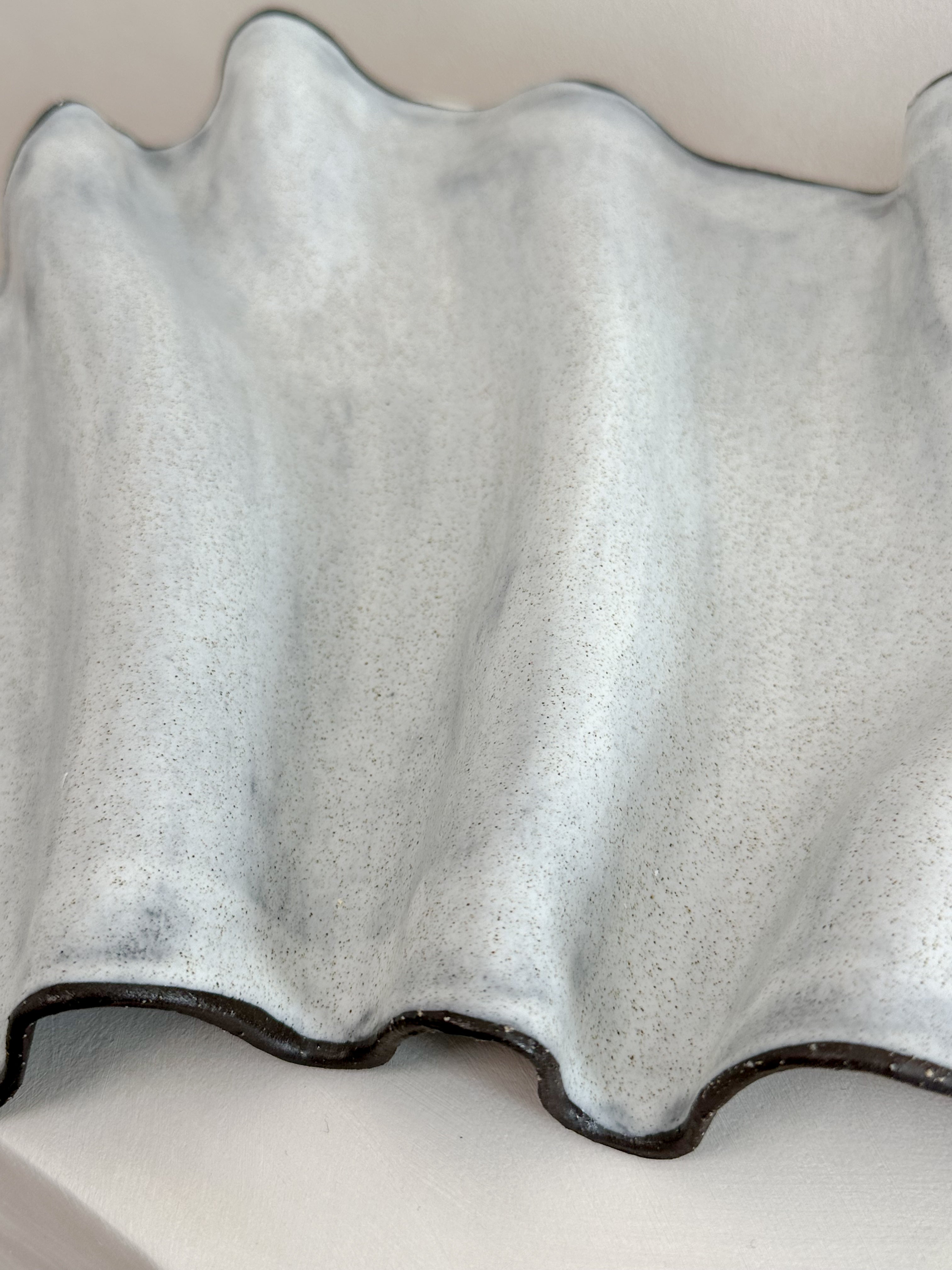 Inspired by the gentle stillness of coastal rock pools, each platter in this collection is hand-built to echo the organic contours shaped by the sea. Subtle rises in the surface represent rocks emerging above the tide, creating natural undulations and gentle height across the piece. These elevated forms not only add sculptural interest but also act as intuitive dividers, perfect for styling antipasto selections and making the platter easy to carry and pass around the table.