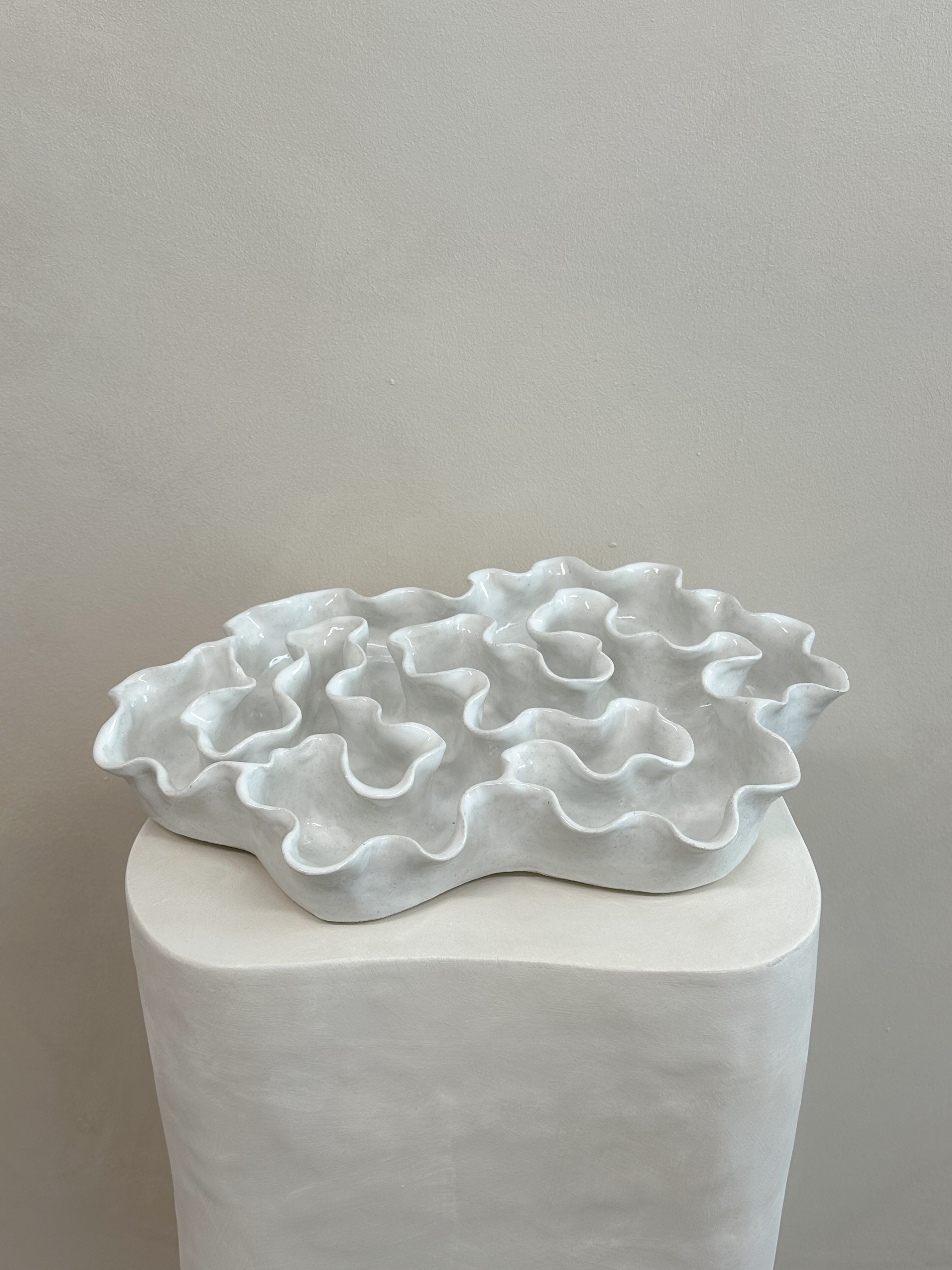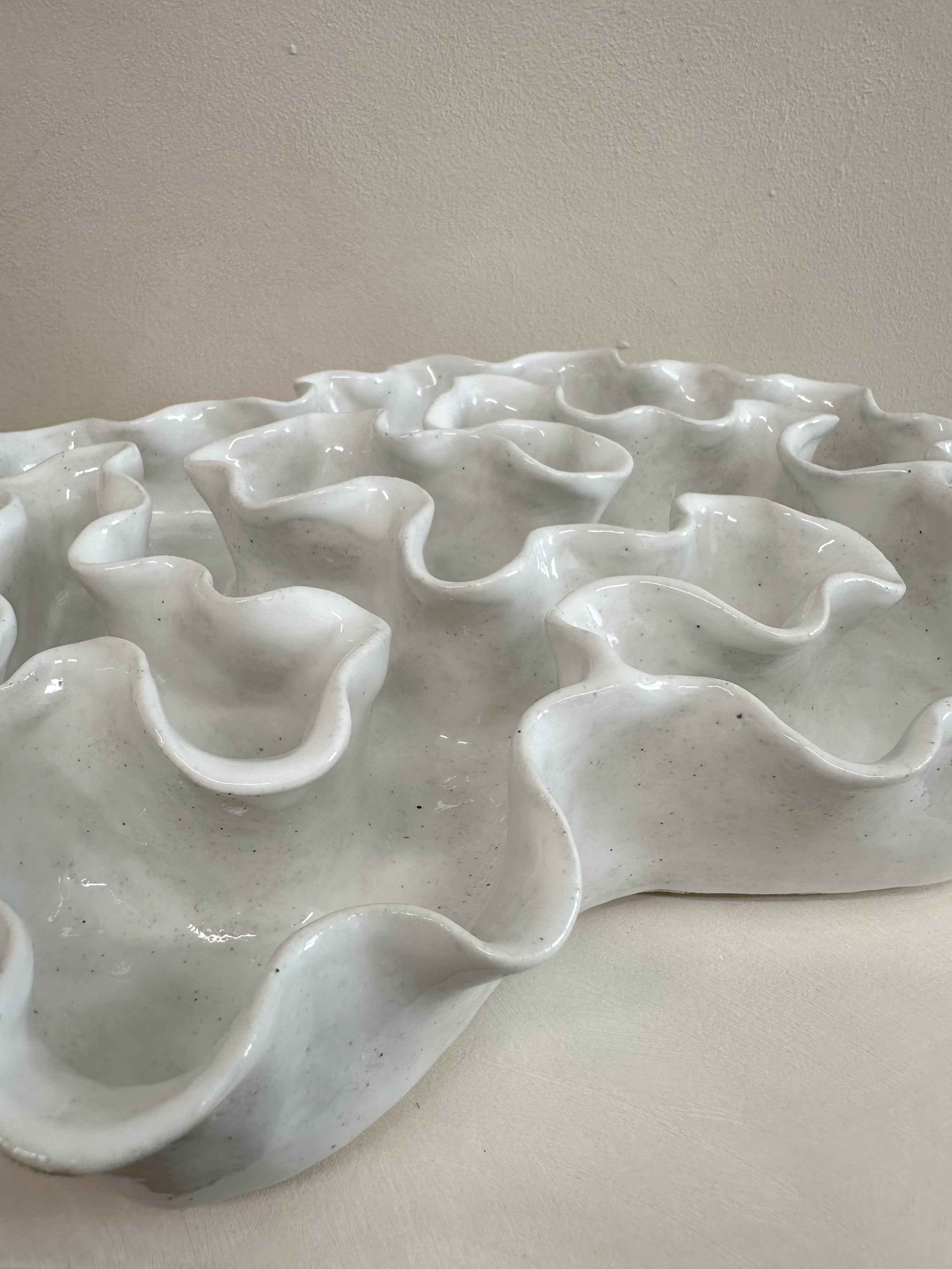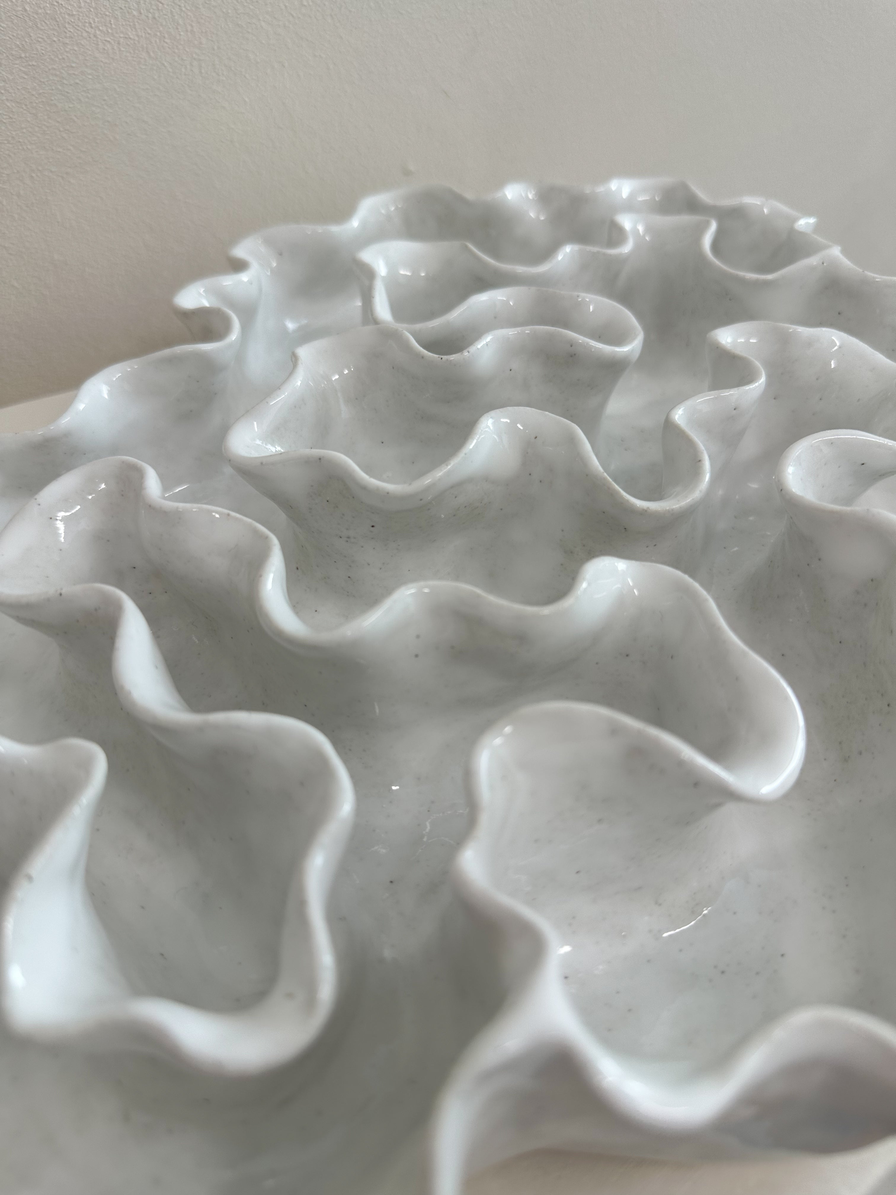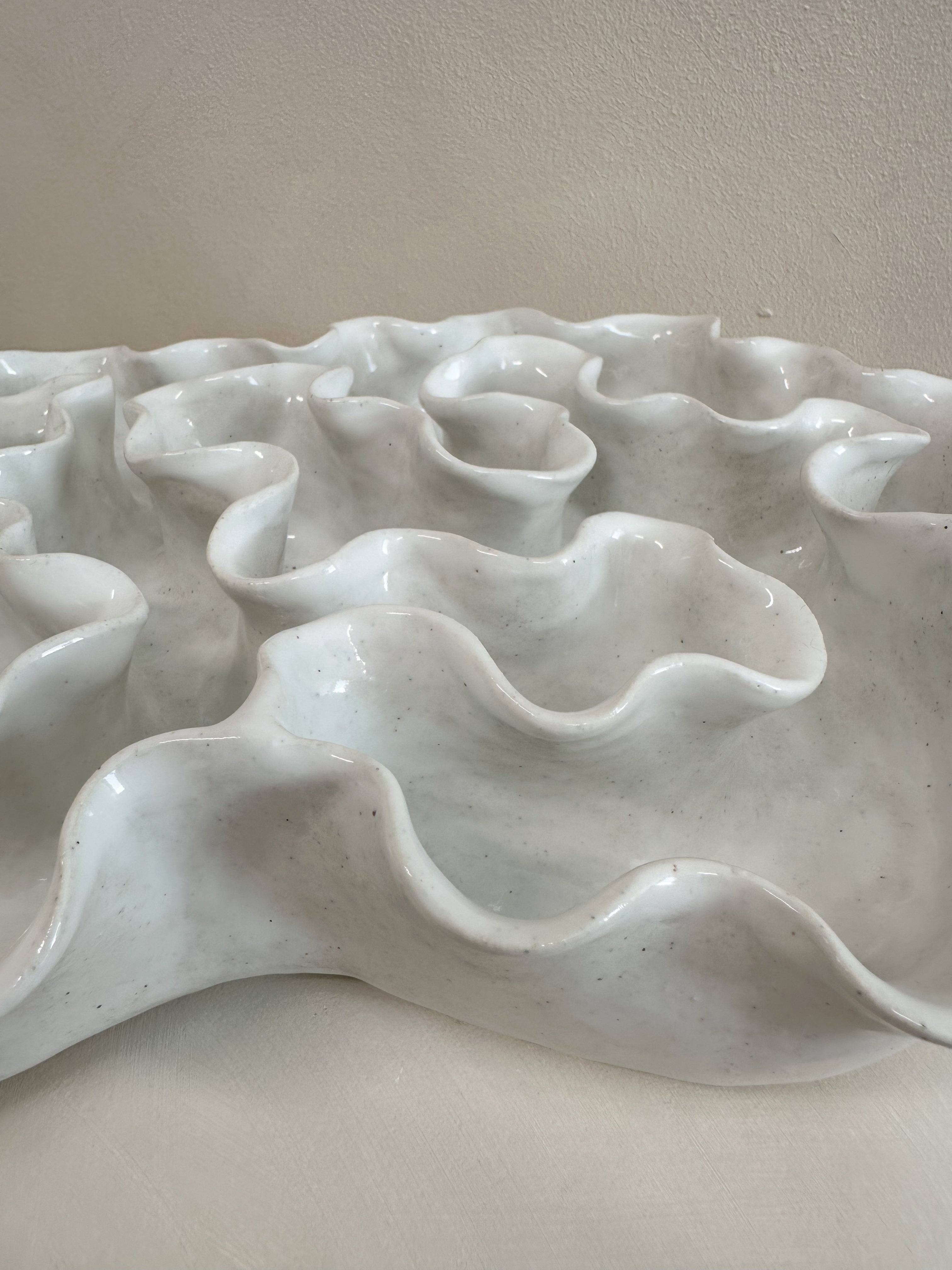 This Sculpture Oyster Platter has been hand crafted with a textured white clay body and glazed with a glossy white glaze.